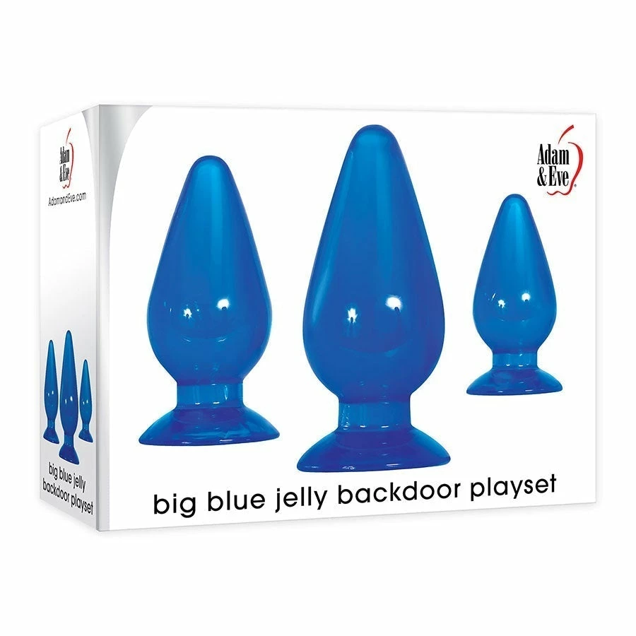 The Big Blue Jelly Backdoor Playset brings you three TPR anal plugs of various sizes. The flexible graduated plugs allow you to start with the size you are most suited to and train your way up to the largest one.