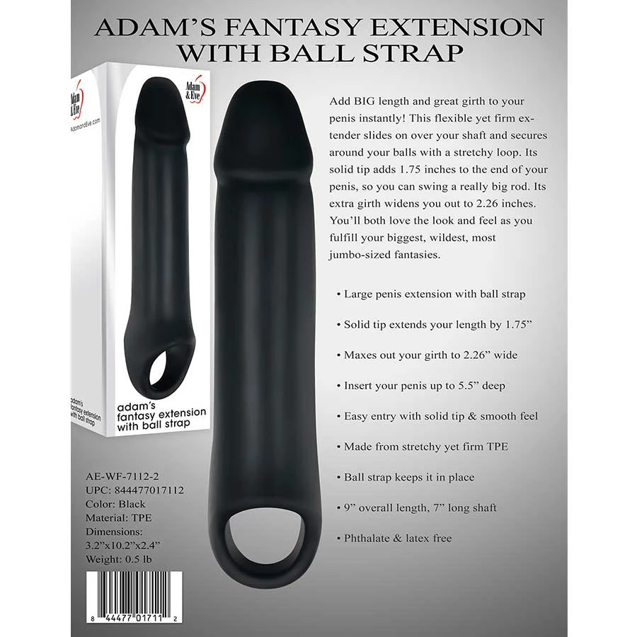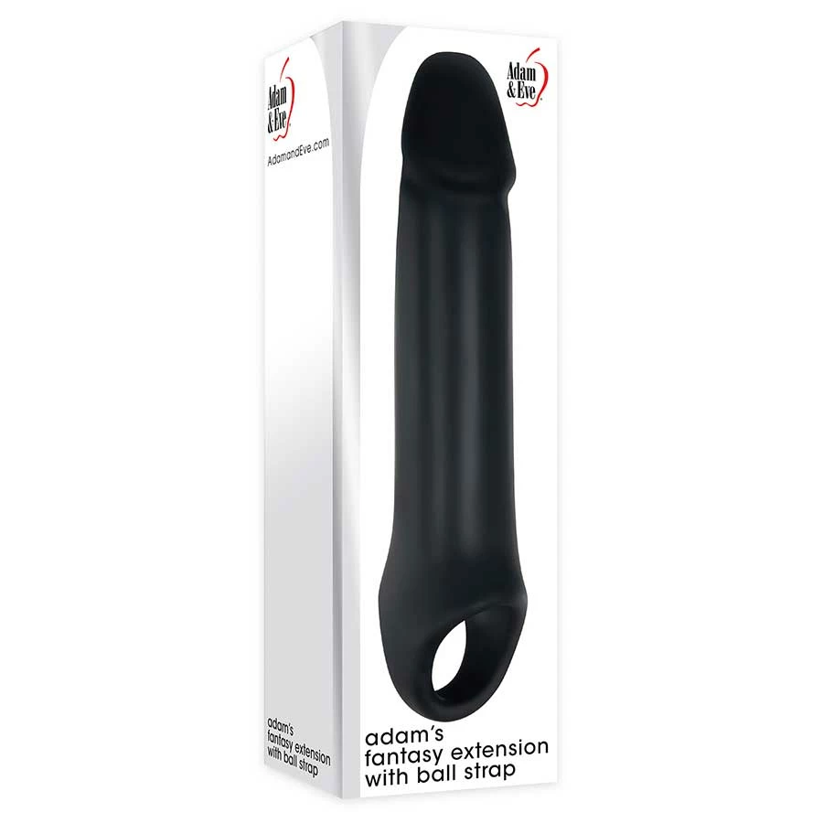 Enjoy massive pleasures with the Adam’s Black Fantasy Extension With Ball Strap by Adam & Eve.