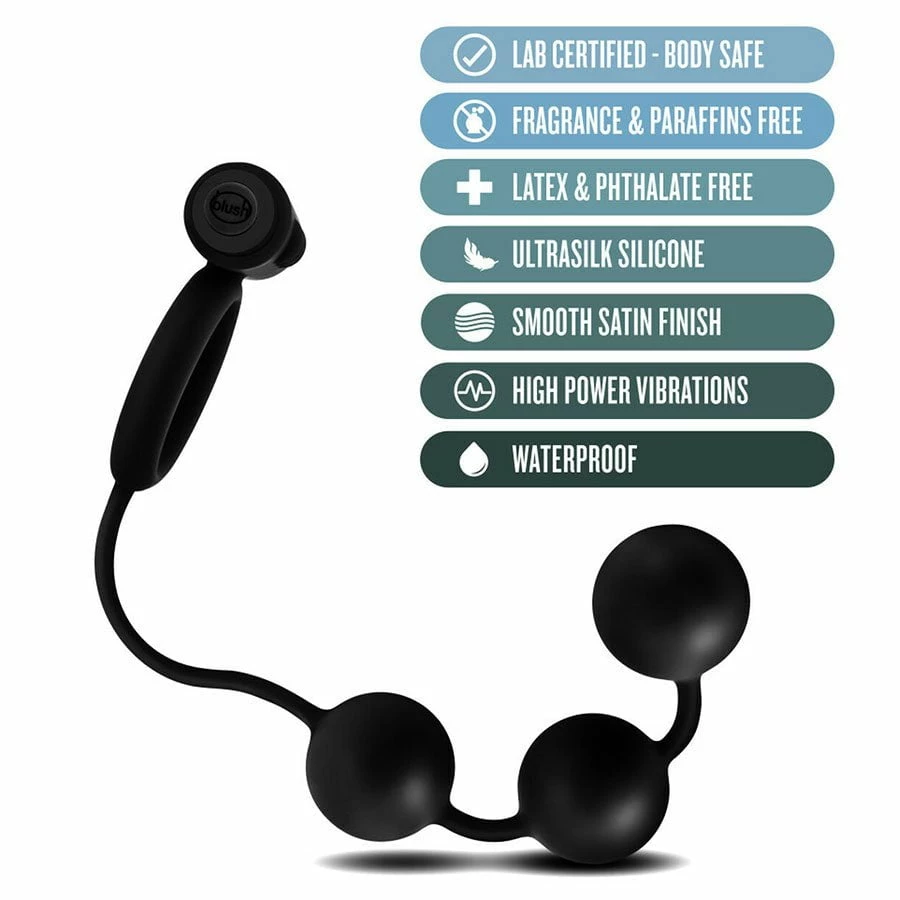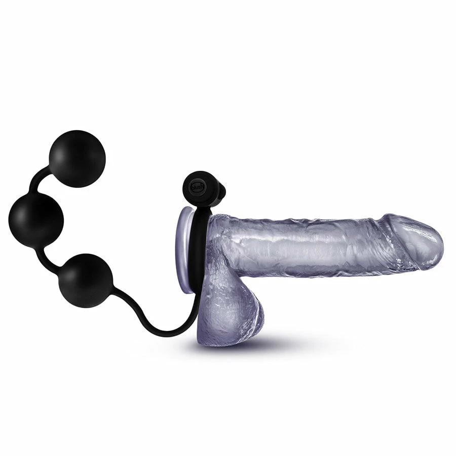 This premium anal sex toy for men is perfect for solo sessions or with a partner. Blush Novelties created this black vibrating c-ring with anal beads which is completely body-safe. It has no Phthalates, Latex, or Paraffins, perfect for those with sensitive skin.