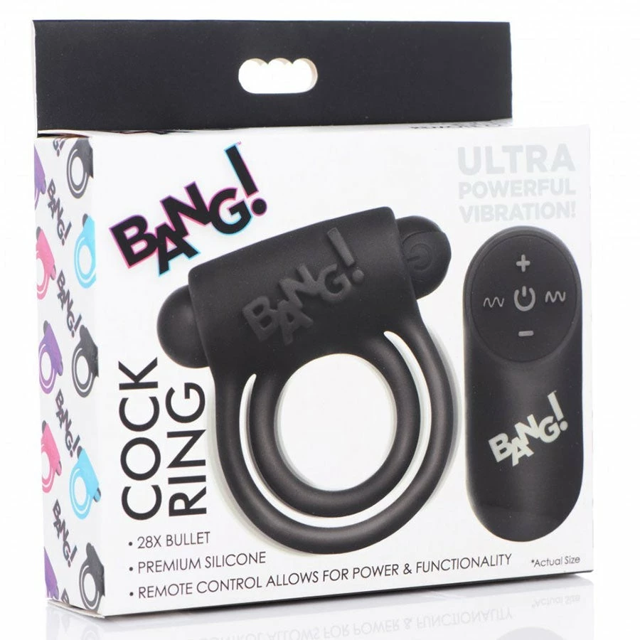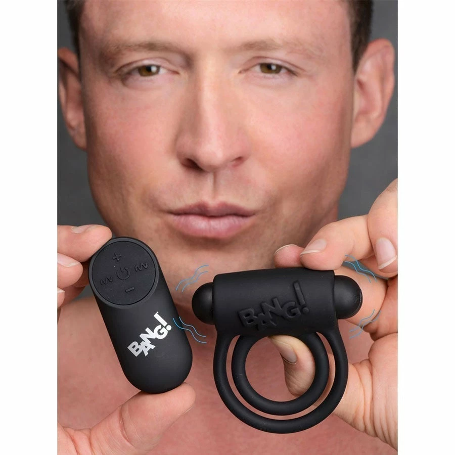 Make all your sexual fantasies come true. Use the Bang Black Silicone Remote Control Vibrating Cock Ring and Bullet! This pure silicone cock and ball ring will make you last longer and give you the sexual prowess needed to please your partner.