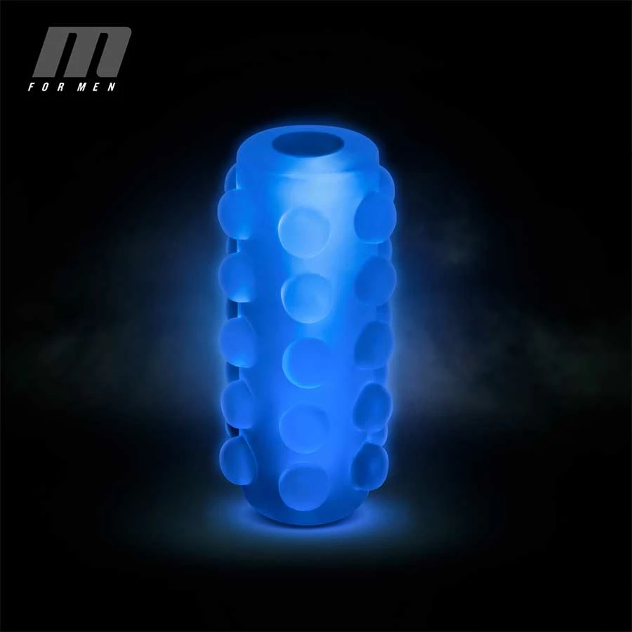 Orgasms have never been this enjoyable! The M for Men Soft and Wet Reversible Orb Frosted Stroker is a double-sided masturbator that glows in the dark and has a unique self-lubricating feature that makes it slippery and fun. To activate the self-lubrication, all you have to do is add water (or saliva)! With 2 distinct textures, you can easily flip the stroker inside out and enjoy a totally new experience.