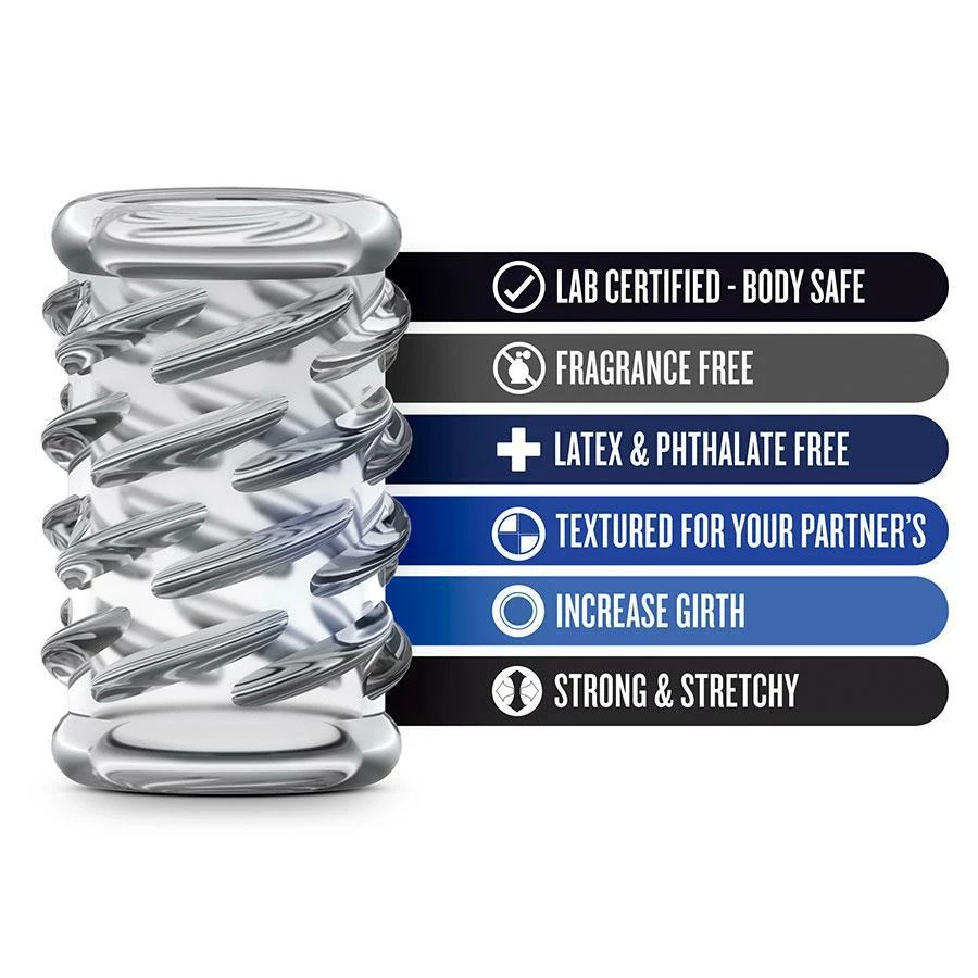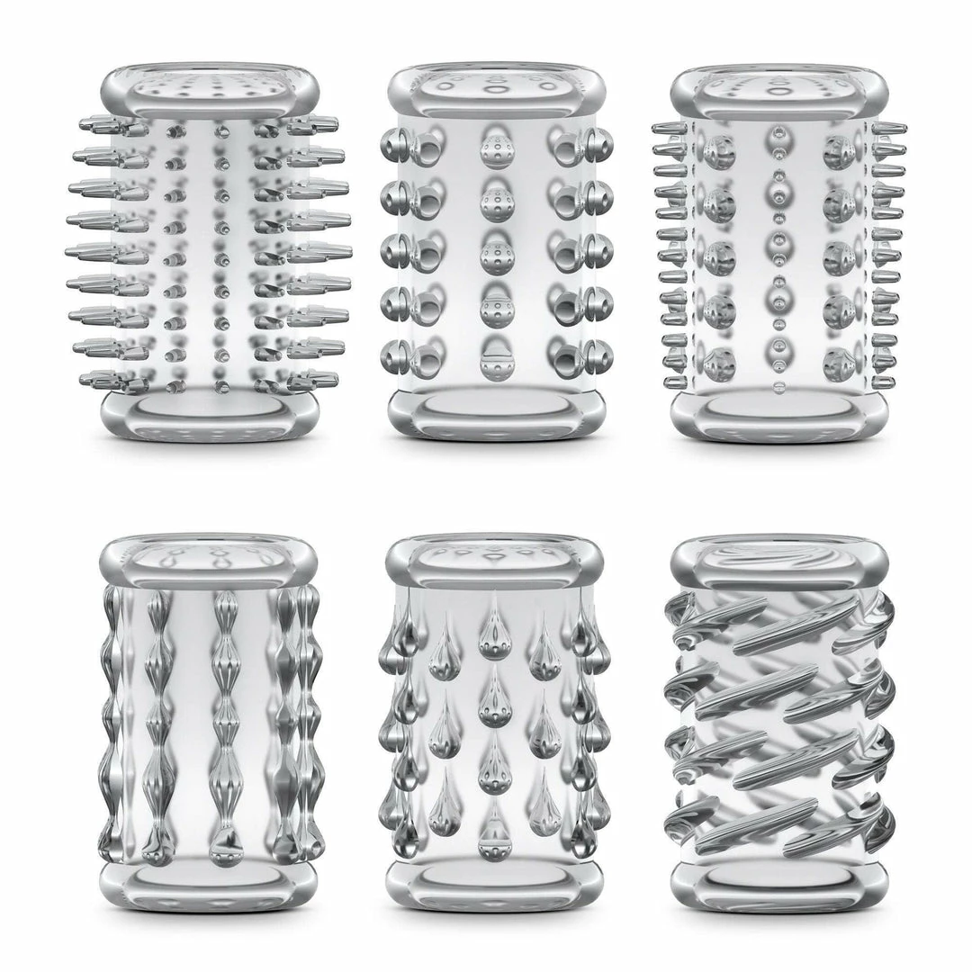 That is why the geniuses over at Blush Novelties created the Cock Sleeve Kit for male and female pleasure which consists of 6 ultra-stretchy penis sleeves, each with a unique and fun texture. These sleeves are designed to add pleasure as well as act as a penis extender, adding a bit of length and girth to the penis for even more fun!