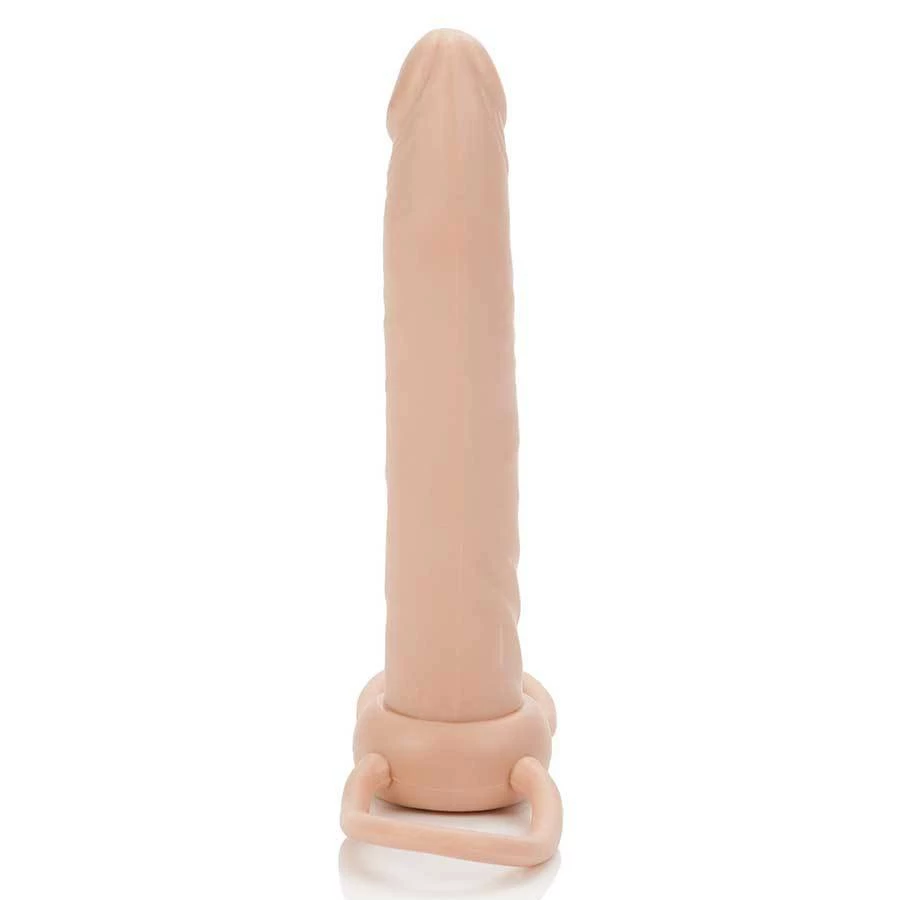 Give your partner twice the fun with this double penetrating toy by Cal Exotics. The dildo is slim, contoured, and realistic as heck that it looks and feels like just a real cock but without another dude! This cock ring is designed with a dual support system for a direct penis ring and scrotum attachment that gives you both control and comfort. It is sturdy yet soft and can be even used completely hands-free so you can have more freedom to play with your hands for your partner.