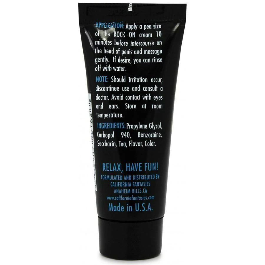 Directions: Apply a small pea size amount of Rock on approximately 10 minutes before sexual activity. Apply to head and shaft of the penis. Reapply if desired.