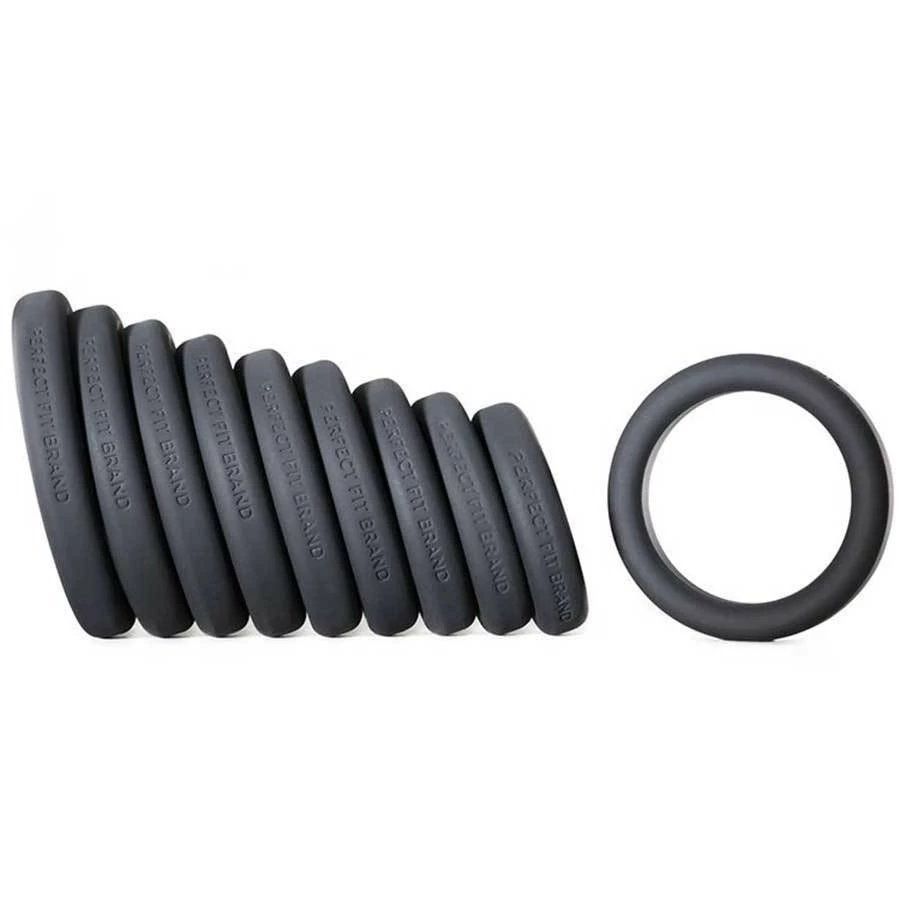 1, 2, and 3, those are the typical pack sizes for cock ring kits in the year 2019 and beyond. Well, don’t tell that to Perfect Fit Brand because they just came out with the most extraordinary silicone cock ring kit yet. This intense set of erection rings includes 9, yes that’s right, 9 individual-size cock rings.