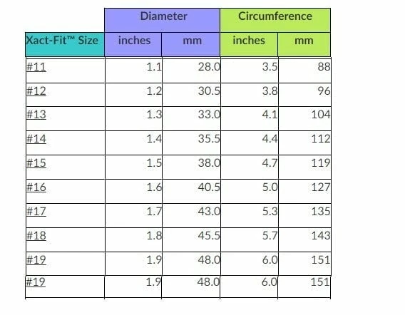 All 14 Xact-Fit rings sizes are now available in single size 2-packs. Check the chart below to find your size. Listed in inches and millimeters. Click the Xact-Fit size # to purchase a Xact-Fit 2-Pack of that size. 3 Ring Kits of M, L, XL and mixed are also available.