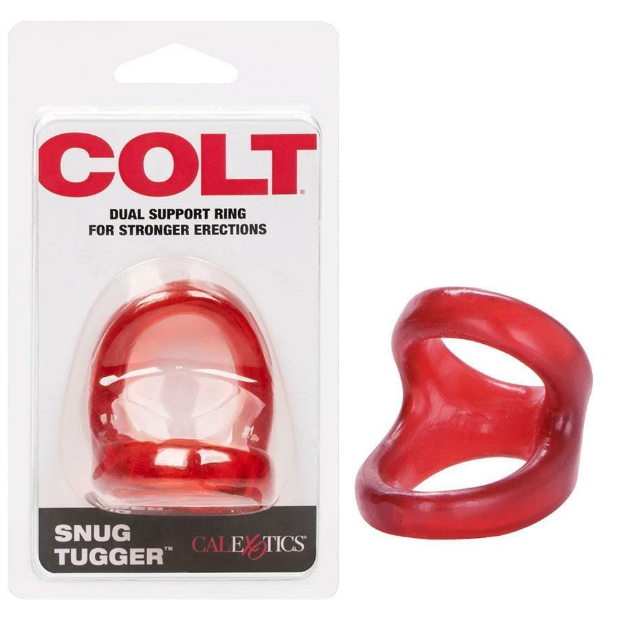 The Colt Snug Tugger is no ordinary slide on your dick type of cock ring. This is a special ring for men known as a cock and ball ring which is exactly what it sounds like. Its a double cock ring with dual loops, one for the shaft of your penis and the other to go around your balls for support. While you might ask yourself, ball support? Really? Yes, dont knock it until you try it. Just grab on to your nuts and give a gentle tug, feel that pressure? It feels good, doesn’t it? Similar to what wearing this support ring around your balls would feel like.