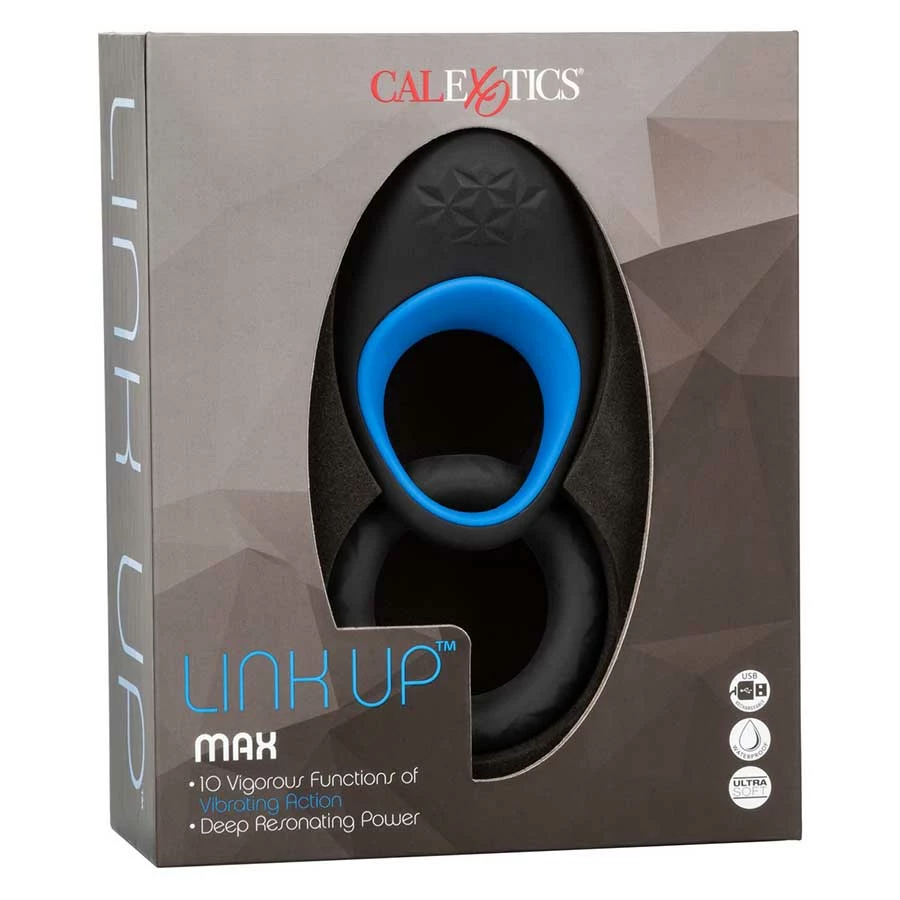 Each thrust of Cal Exotic’s Link Up Max Vibrating Cock Ring gives you an intense and more satisfying connection with your lover. The dual stimulating ring delivers tremendous pleasure with 10 distinct functions of vigorous and super-intense vibrating action, added Ultra-Soft support ring, and sensually designed stimulator.
