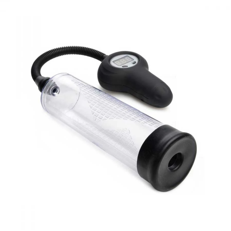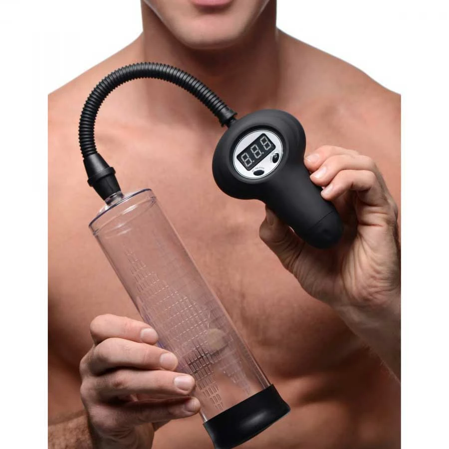 Draw massive amounts of blood into your penis to increase size and sensitivity! This powerful male sex toy uses a digital pump and gauge to create and measure the pressure within the cylinder. One of the easy-to-use buttons turns the suction on or off, while another button quickly releases air when you are ready to remove the pump and get some action.