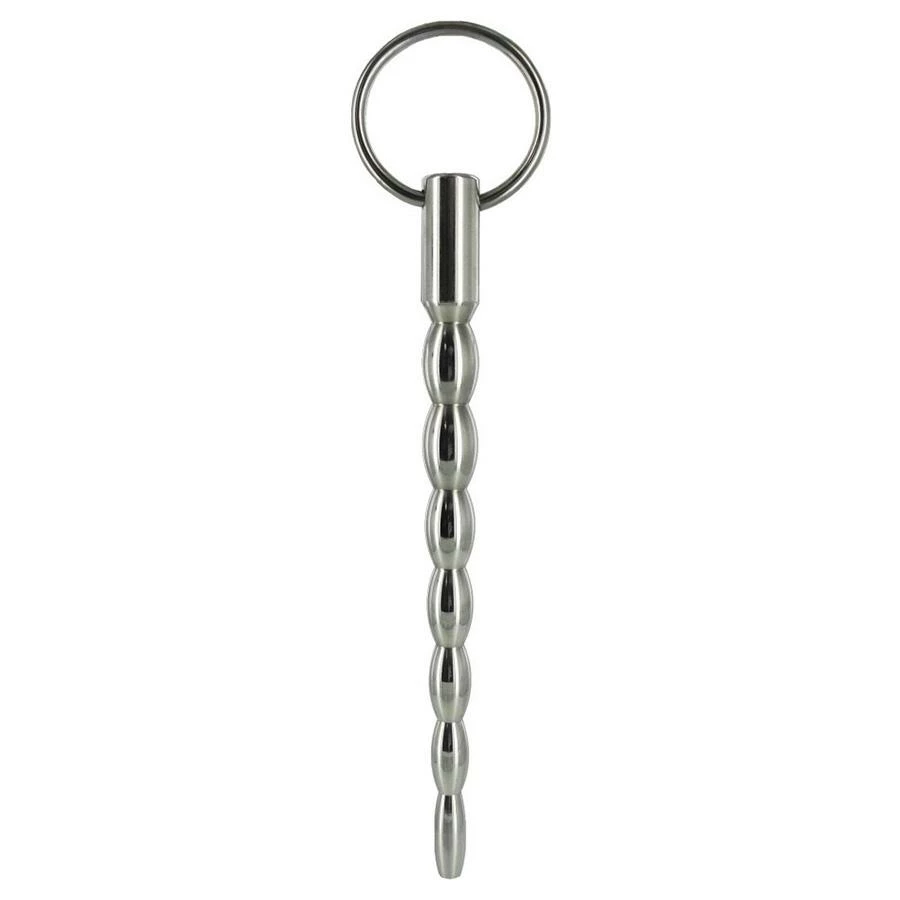 - Brushed stainless steel urethral plug designed to stretch your penis hole