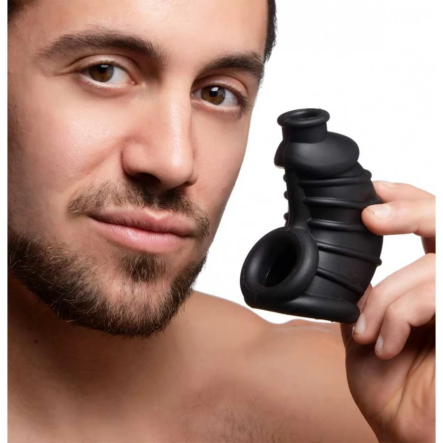 Unlike cages made from plastic and metal, the silicone material is travel friendly and discreet. The flexible nature works with your clothing rather than against it, so you can go about your day protected without a large bulge in your undergarments! This cage is held in place thanks to a snug cock and ball opening.