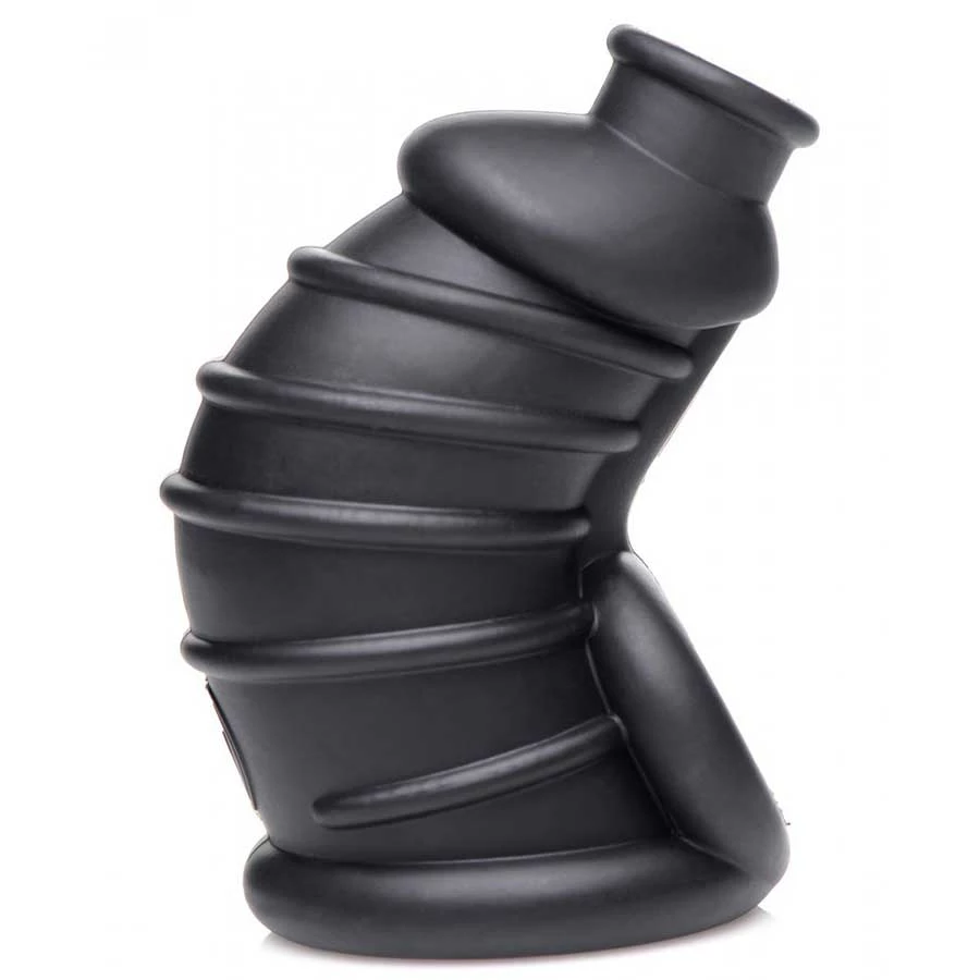 Designed and constructed with premium, velvety silicone for comfortable caging! The Dark Chamber features a cum thru tip for easy relief during wear, making this comfy cage perfect for extended chastity scenes for beginners and experts.