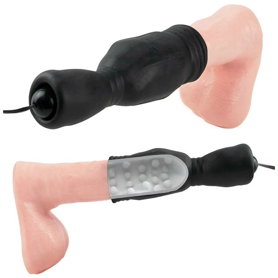 This wonder vibrator is called the Vibrating Head Teazer and it is truly in a league of its own when it comes to giving men, mind-bending orgasms. The Vibrating Head Teazer is a simple yet powerful sex toy that includes a multi-speed vibrating bullet and a soft and super stretchy TPR (Rubber) Sleeve which slides on to the penis head and then vibrating bullet slips into it.