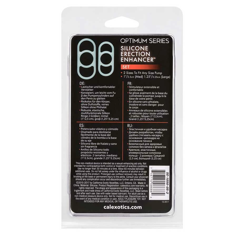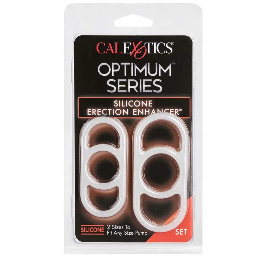 Stay hard with the Optimum Series Silicone Erection Enhancer Set. Designed to be specifically used with a penis pump cylinder, the dual grips make moving from the cylinder to your shaft a breeze.