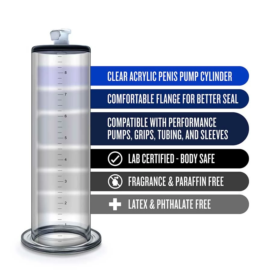 When using a penis pump it is very important to use the correct size cylinders if you want to maximize your workouts. Thanks to Blush Novelties it is now easier than ever to ensure you are using the right equipment. Even once you start growing, thanks to the quick disconnect air fittings on the Performance Series cylinders you can swap out for the next size up.