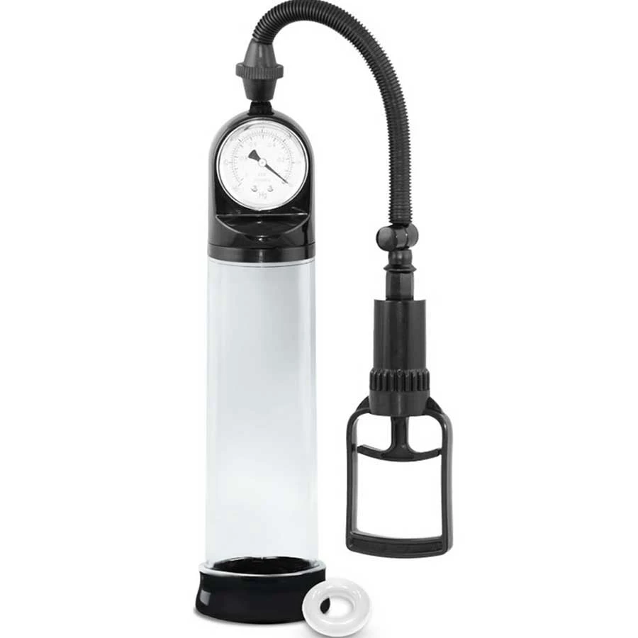 The overall length of the pump including the air-gauge is 12.25 inches with 8 of those inches being insertable. This is an ideal pump size for all men with a penis less than 7.5 inches. The width is industry standard at 2.5 inches.