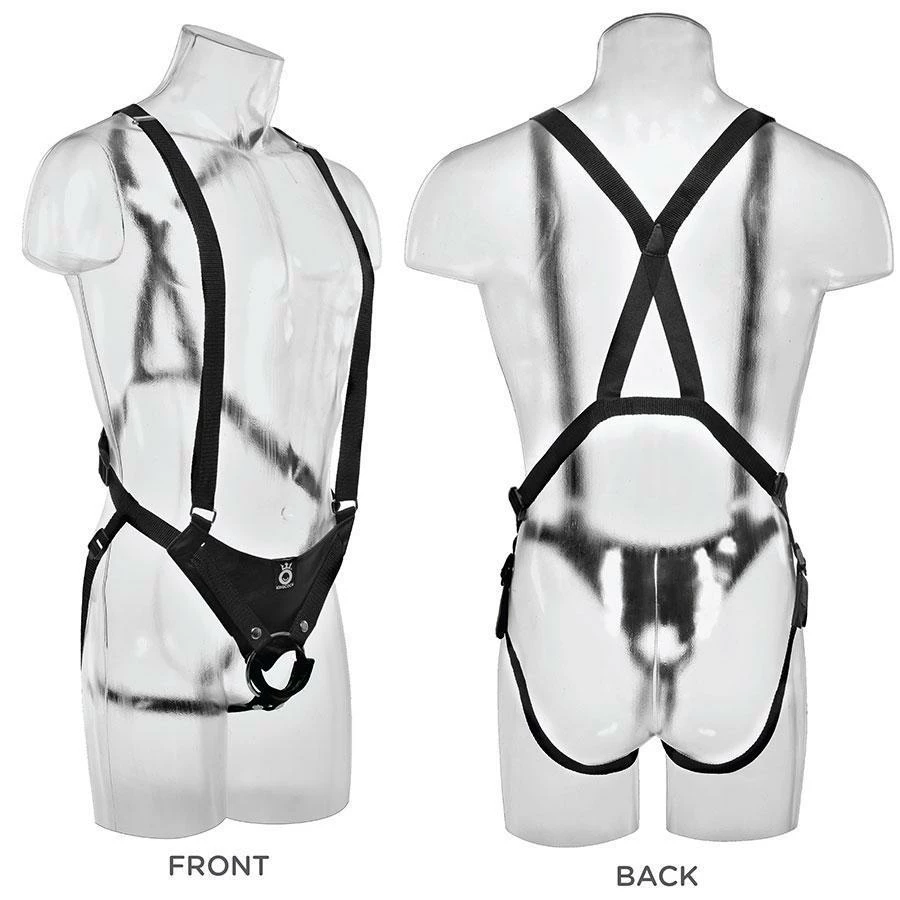 The King Cock Two Cocks One Hole Hollow Strap-On Suspender System is phthalate-free and made in Pipedream’s state-of-the-art USA manufacturing facility.
