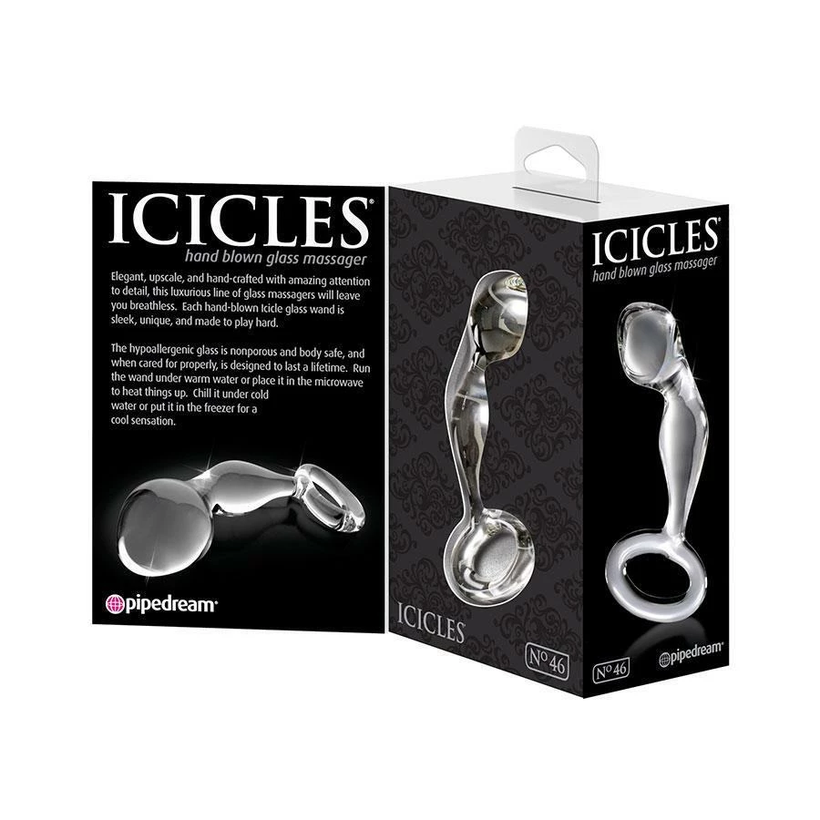 Not only will this glass prostate massaging anal plug feel amazing, but it looks like an awesome piece of art too. This glass Icicles N.46 prostate massager is sleek, weighty and curved to perfection. With a slight curve and large bulbous tip, this glass babe will have you over the edge in no time. Elegant, upscale, and hand-crafted with amazing attention to detail, this luxurious line of glass massagers will leave you breathless. Each hand-blown Icicle glass plug is sleek, unique, and made to play hard.