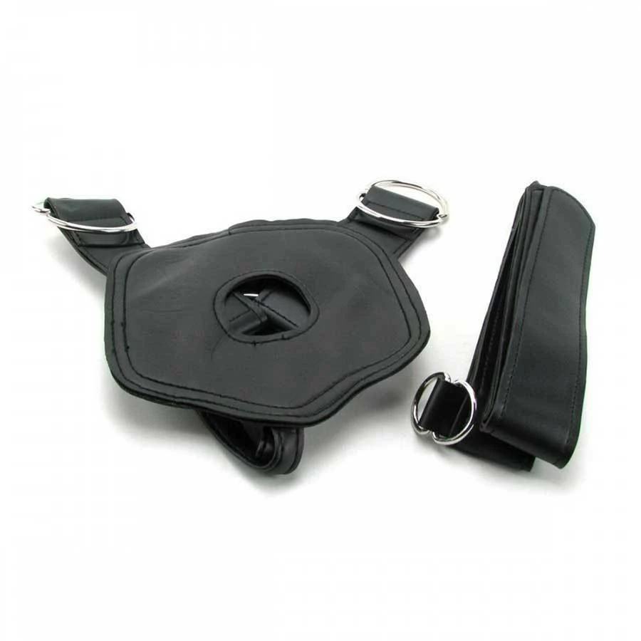 A steel-plated O-ring holds the dildo in place (with some help from your erection)