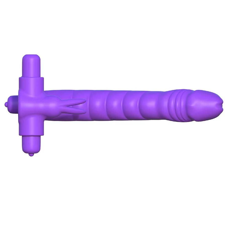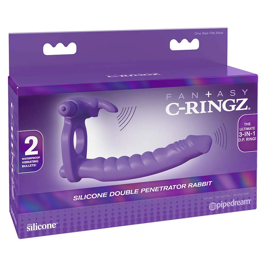 Have you ever fantasized fucking your woman twice as much with one of her holes or even filling both her holes at the same time? Turn your dreams into reality with the Silicone Double Penetrator Vibrating Rabbit Cock Ring Purple. This double penetration cock ring from Pipedream Products is the perfect addition to your carnal adventures that doesn’t only please her, the vibrations will make you cum hard too!