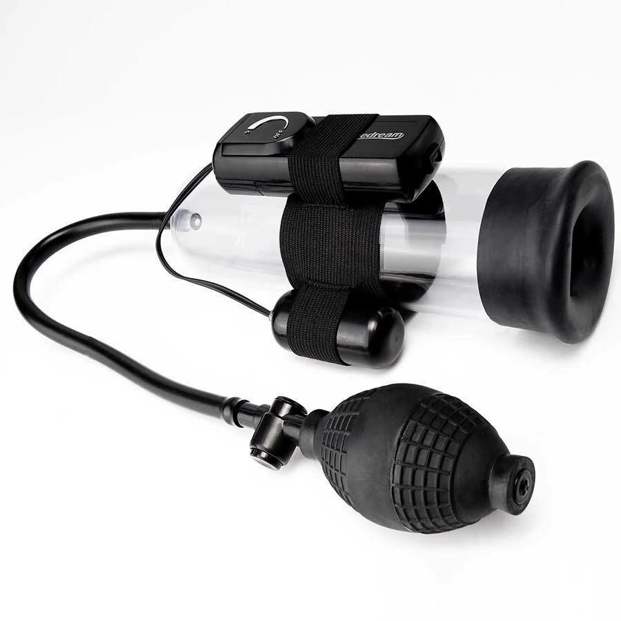 The Beginner’s Vibrating Pump will give you the penis size and confidence you’ve always dreamt about without any harmful side effects. With each squeeze of the medical-style pump ball, your pleasure rod will grow bigger, thicker, and swell with power. Once you penetrate the smooth, flexible PVC opening, you’ll quickly discover throbbing, rock-hard erections that feel great and last and last with no midway performance letdowns!