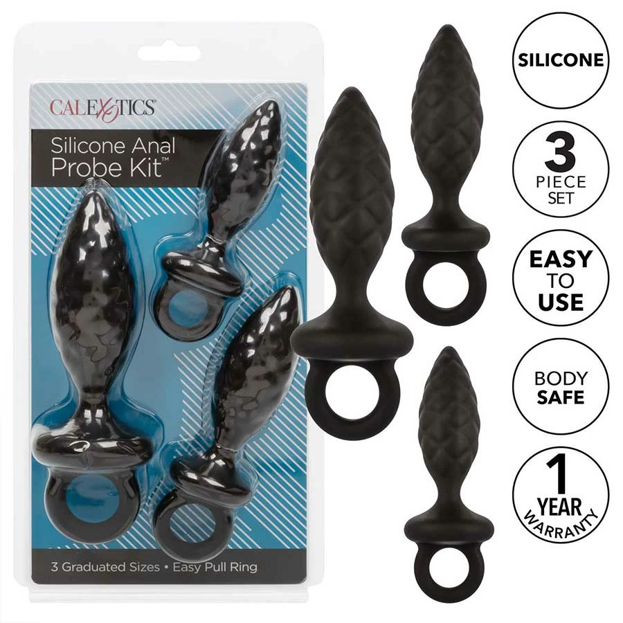 - Premium anal training kit of 3 graduating silicone anal plug sizes with easy pull rings perfect for beginners and advanced players