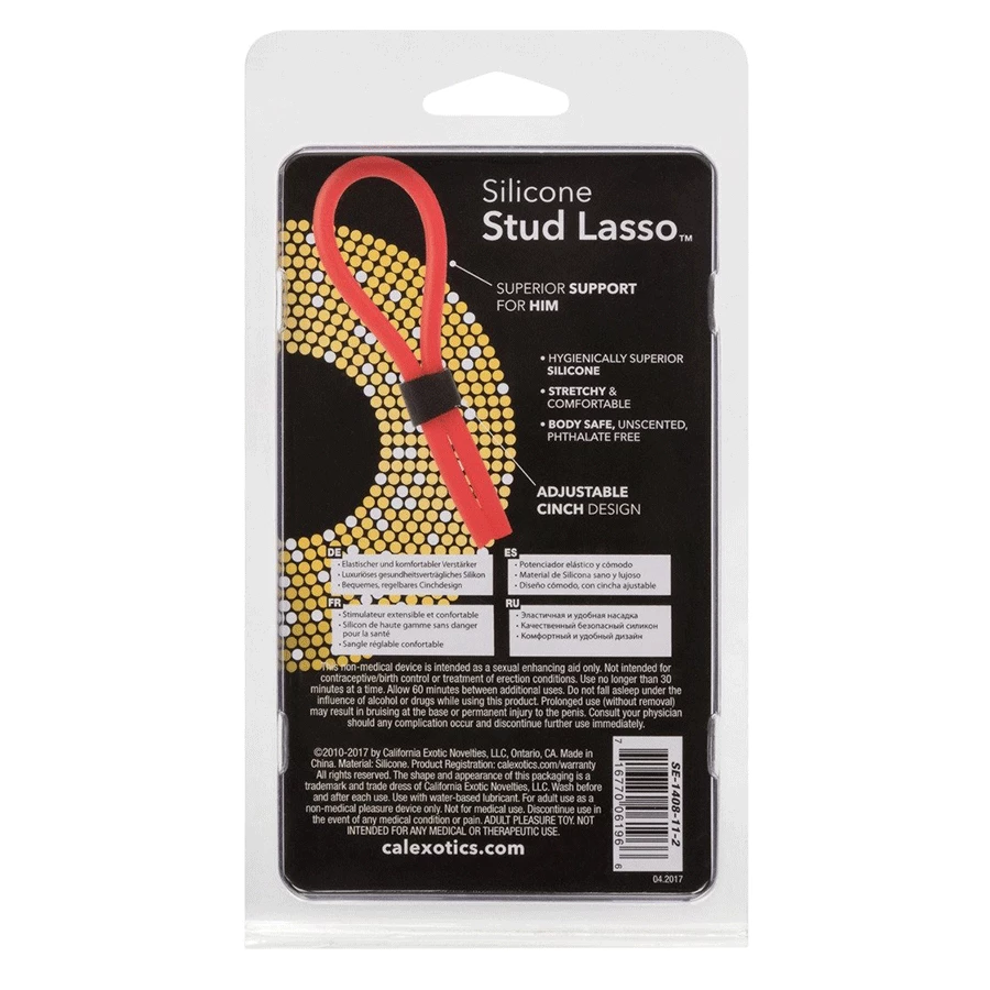 - Extend your sensual performance and orgasmic ecstasy with the Red Silicone Stud Lasso