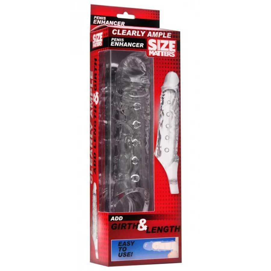 Ever wonder what it will be like with a longer and thicker penis? Well, it’s time to stop wondering and slip on the Size Matters Clearly Ample Cock Sheath penis extension sleeve. Men can enjoy a bigger, thicker, longer-lasting erection instantly, with no pills, creams, or devices! This clear instant erection enhancer increases the size and pleasure for both partners.