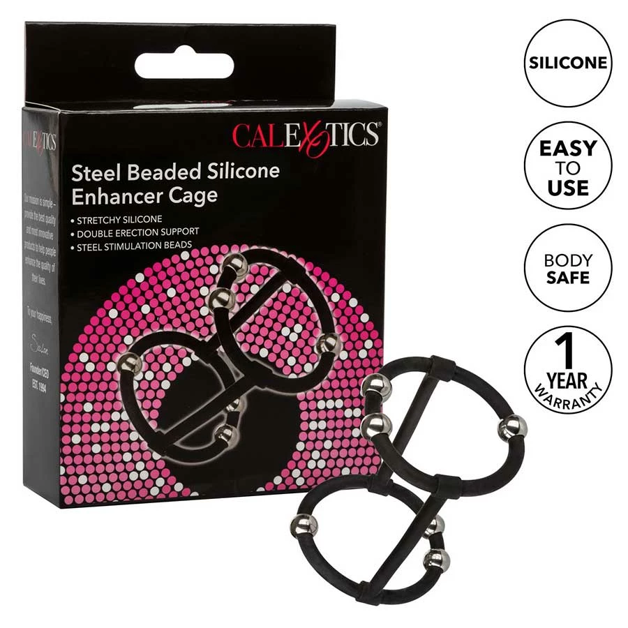 - Enhance, escalate, and intensify your lovemaking with this sturdy yet stretchy silicone enhancer cage with pleasure steel beads