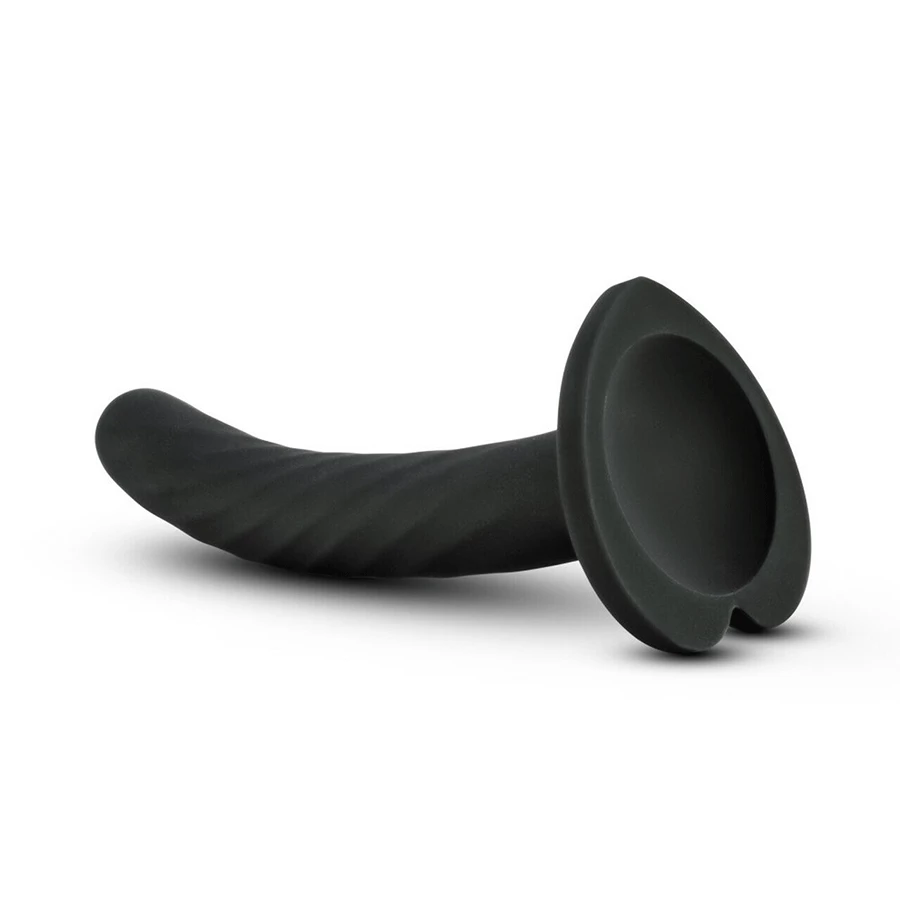 The Temptasia Twist 4.5-inch Black Dildo has a slim shape and a swirly texture on the surface. This slimi silicone dildo features a heart-shaped suction cup base which you can use with a harness. Great for solo or with a partner, this is also a sex toy ideal for beginners.