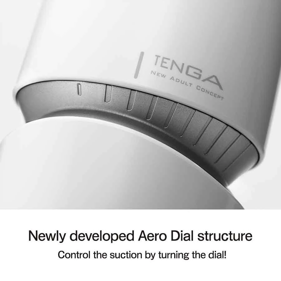 The ergonomic design of the Tenga Aero fits perfectly in your hand as you slide it up and down on your rock-hard dick. If you are ready to take the action to the next level all you have to do is grip the turn dial and choose one of the 10 present suction intensities.