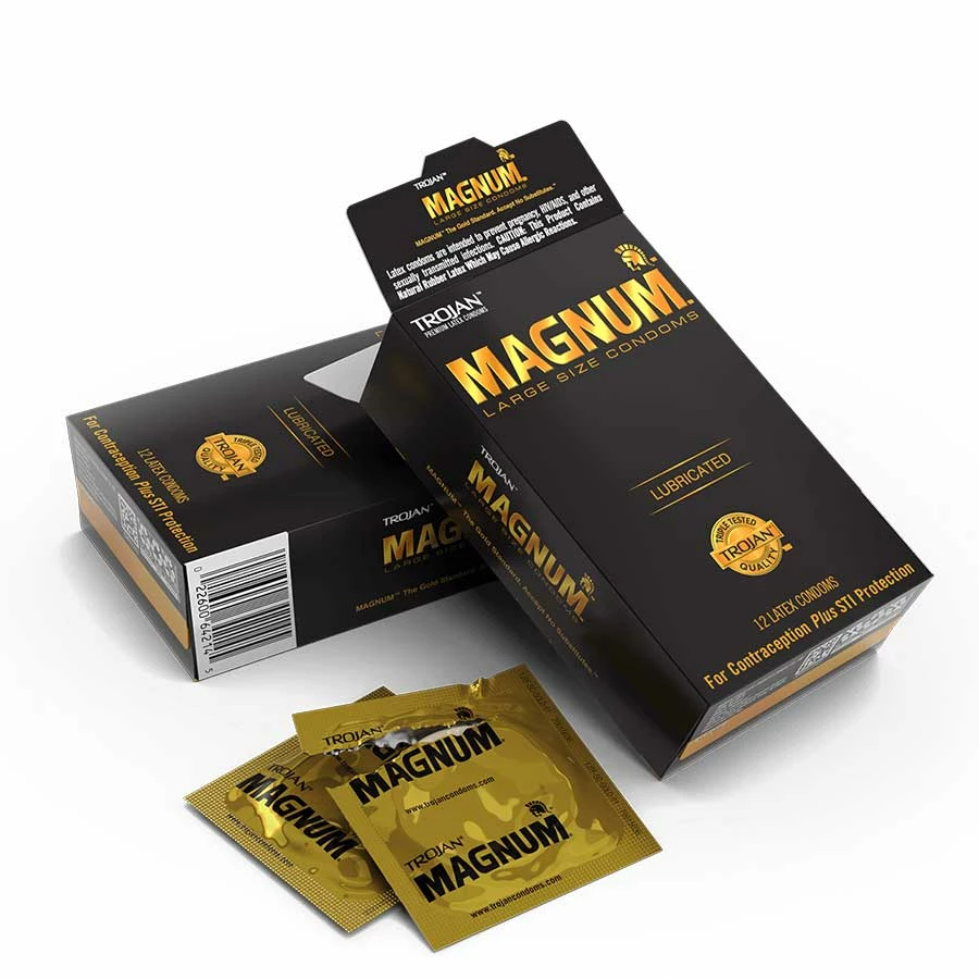 Enjoy larger-than-life pleasure. From the makers of Trojan comes Magnum Large Size Condoms, the best large condom in the unmistakable gold wrapper.