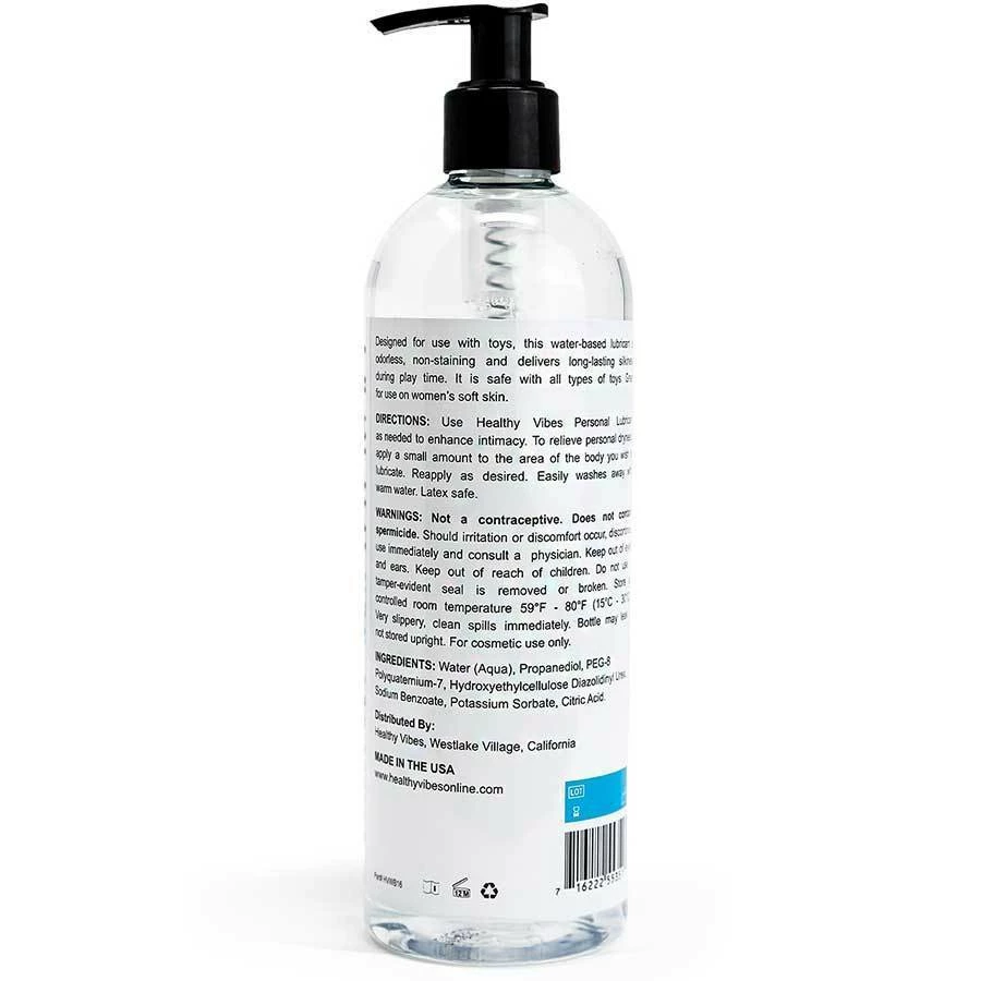Set the fun in motion with the Personal Lubricant for sex from Healthy Vibes! Our water-based formula has a silky smooth consistency that helps make initial penetration easy and comfortable. It was specially designed to remain slick over an extended period of time, preventing the tackiness that’s so common with other lubes. Healthy Vibes Water Based Lubricant is great for anal sex as well!