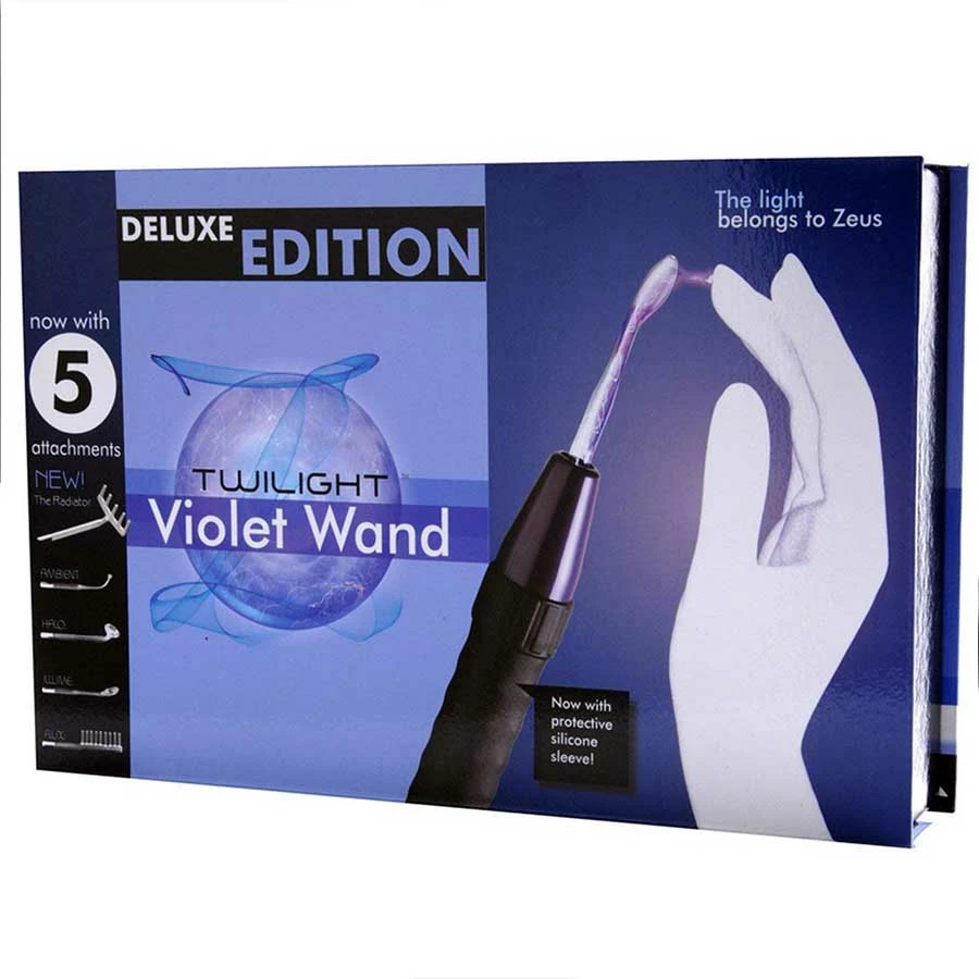 Put all the power in your hand with the Zeus Deluxe Edition Twilight Violet Wand Electro-Stim Kit. This all in one stimulation kit for couples (or single people) gives you the ability to shock and electrocute all the way to orgasm.